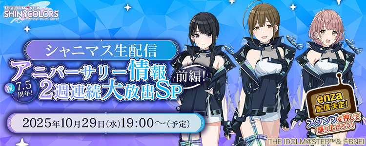 10/29 特設ページで「シャニマス生配信~祝7.5周年!アニバーサリー情報2週連続大放出SP 前編!~」の配信決定!